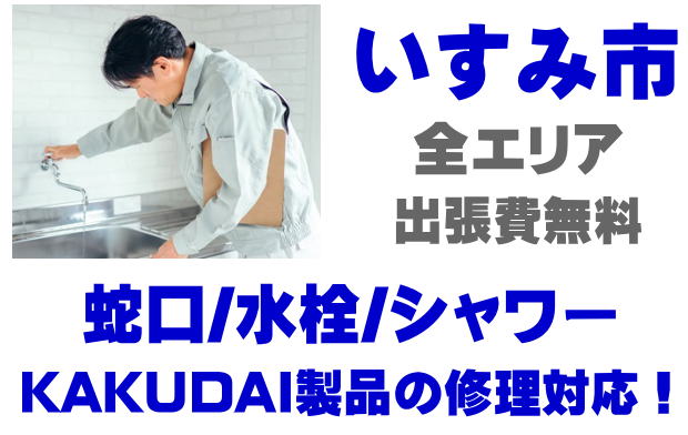 いすみ市で水栓メーカーKAKUDAIの修理業者をお探しなら当社までお気軽にお問い合わせください。蛇口の水漏れ、シャワーの故障などカクダイ製に関するトラブルなら何でもご相談ください。