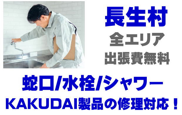 長生村で水栓メーカーKAKUDAIの修理業者をお探しなら当社までお気軽にお問い合わせください。蛇口の水漏れ、シャワーの故障などカクダイ製に関するトラブルなら何でもご相談ください。