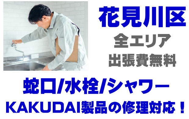 花見川区で水栓メーカーKAKUDAIの修理業者をお探しなら当社までお気軽にお問い合わせください。蛇口の水漏れ、シャワーの故障などカクダイ製に関するトラブルなら何でもご相談ください。