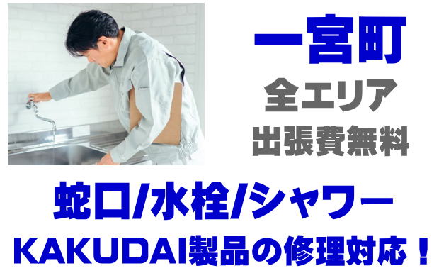 一宮町で水栓メーカーKAKUDAIの修理業者をお探しなら当社までお気軽にお問い合わせください。蛇口の水漏れ、シャワーの故障などカクダイ製に関するトラブルなら何でもご相談ください。