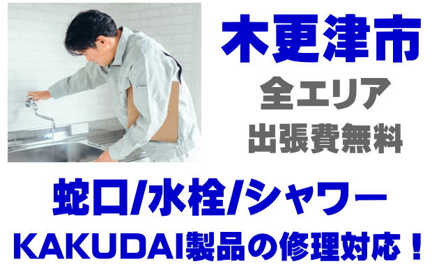 木更津市で水栓メーカーKAKUDAIの修理業者をお探しなら当社までお気軽にお問い合わせください。蛇口の水漏れ、シャワーの故障などカクダイ製に関するトラブルなら何でもご相談ください。
