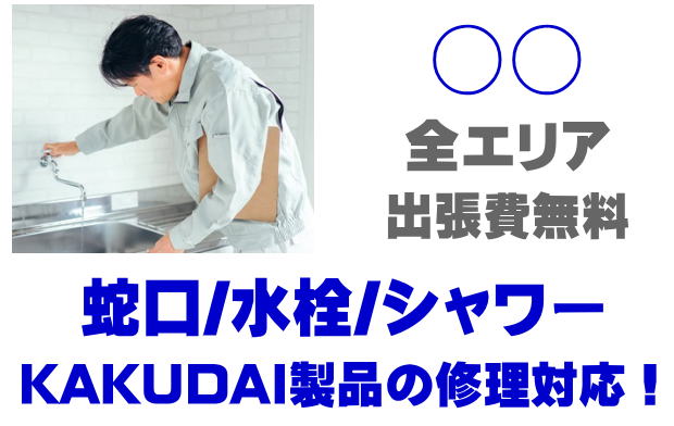 ○○で水栓メーカーKAKUDAIの修理業者をお探しなら当社までお気軽にお問い合わせください。蛇口の水漏れ、シャワーの故障などカクダイ製に関するトラブルなら何でもご相談ください。